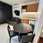 Resort Porto 2 Life tem área de estar, varanda e cozinha totalmente equipada, e confortos como controle de temperatura.